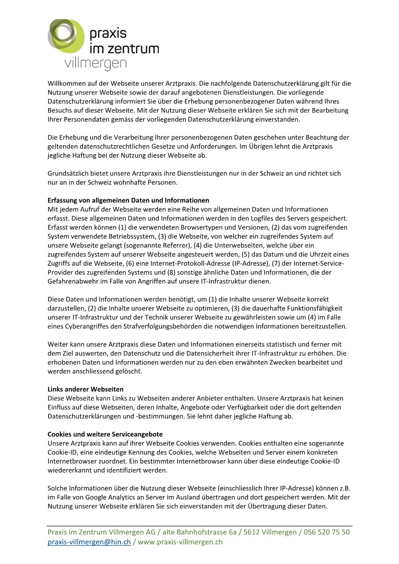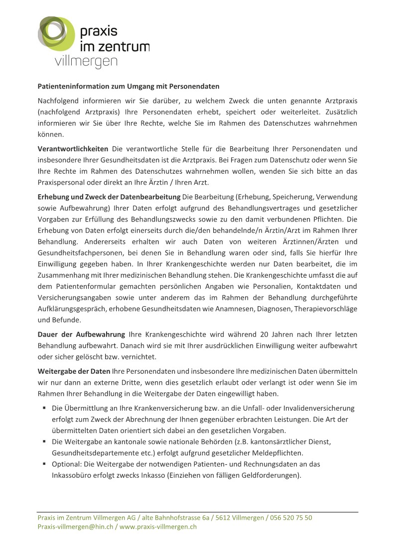 Praxis im Zentrum Villmergen AG, Alte Bahnhofstrasse 6a, 5612 Villmergen